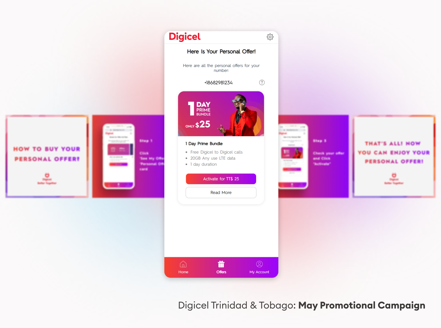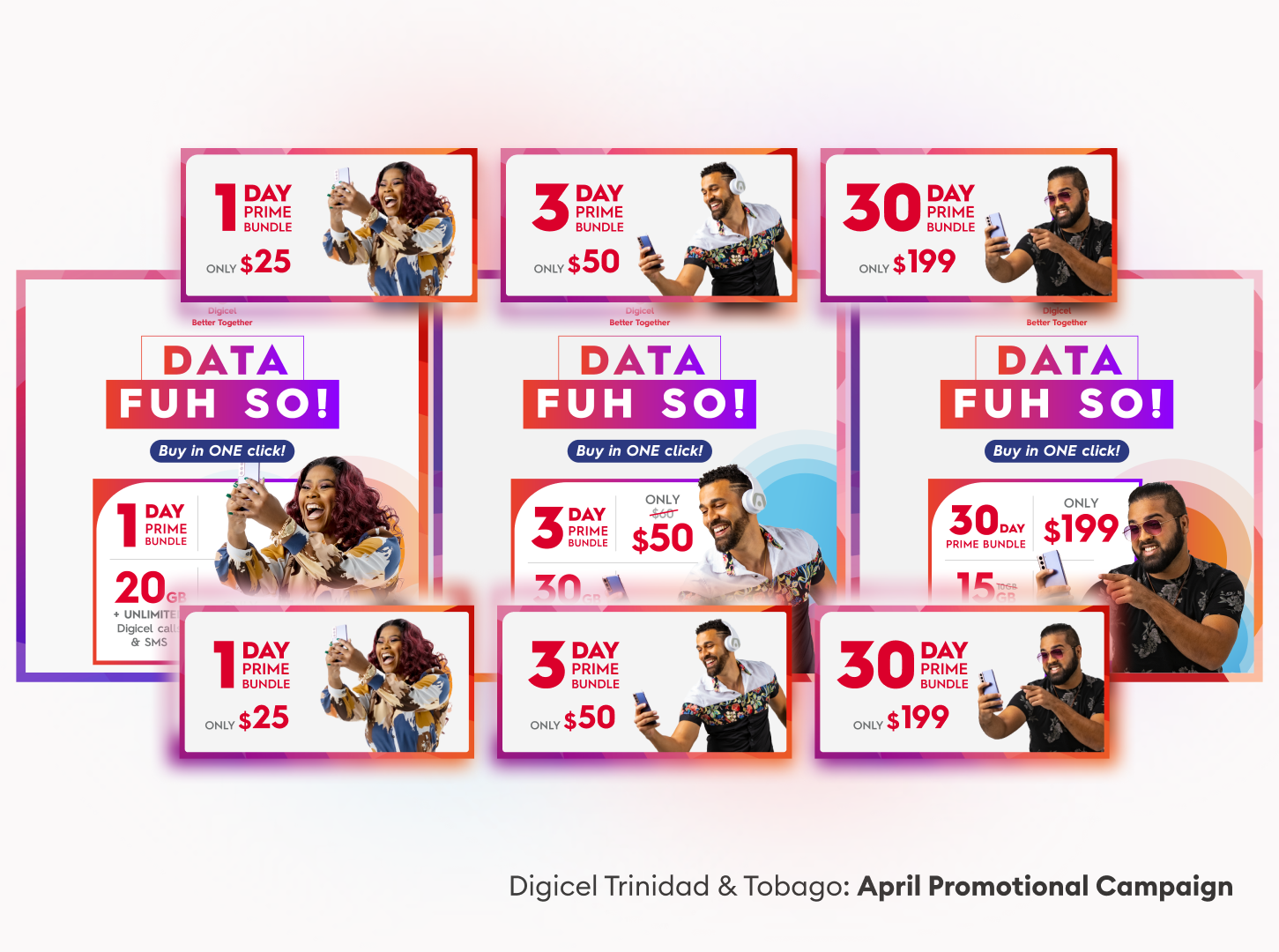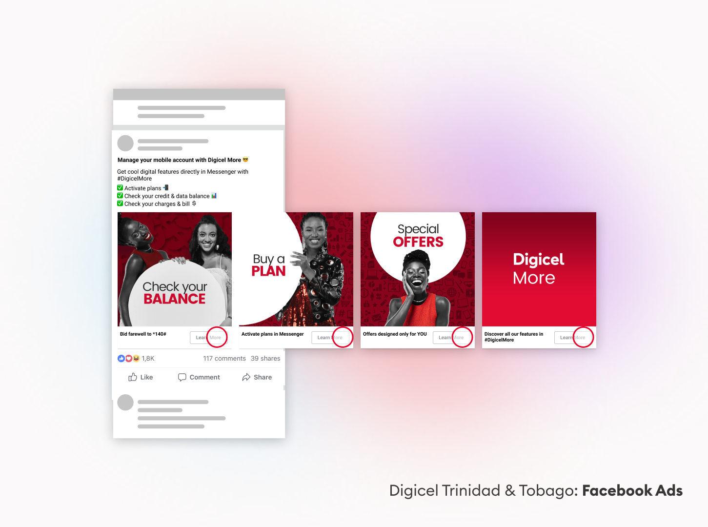 We launched and managed performance campaigns across 6 Digicel markets: Jamaica, Panama, St. Lucia, Trinidad & Tobago, Grenada, and Dominica. Hundreds of social media campaigns ran across Facebook and Instagram, reaching hundreds of thousands of users and generating several million engagements.