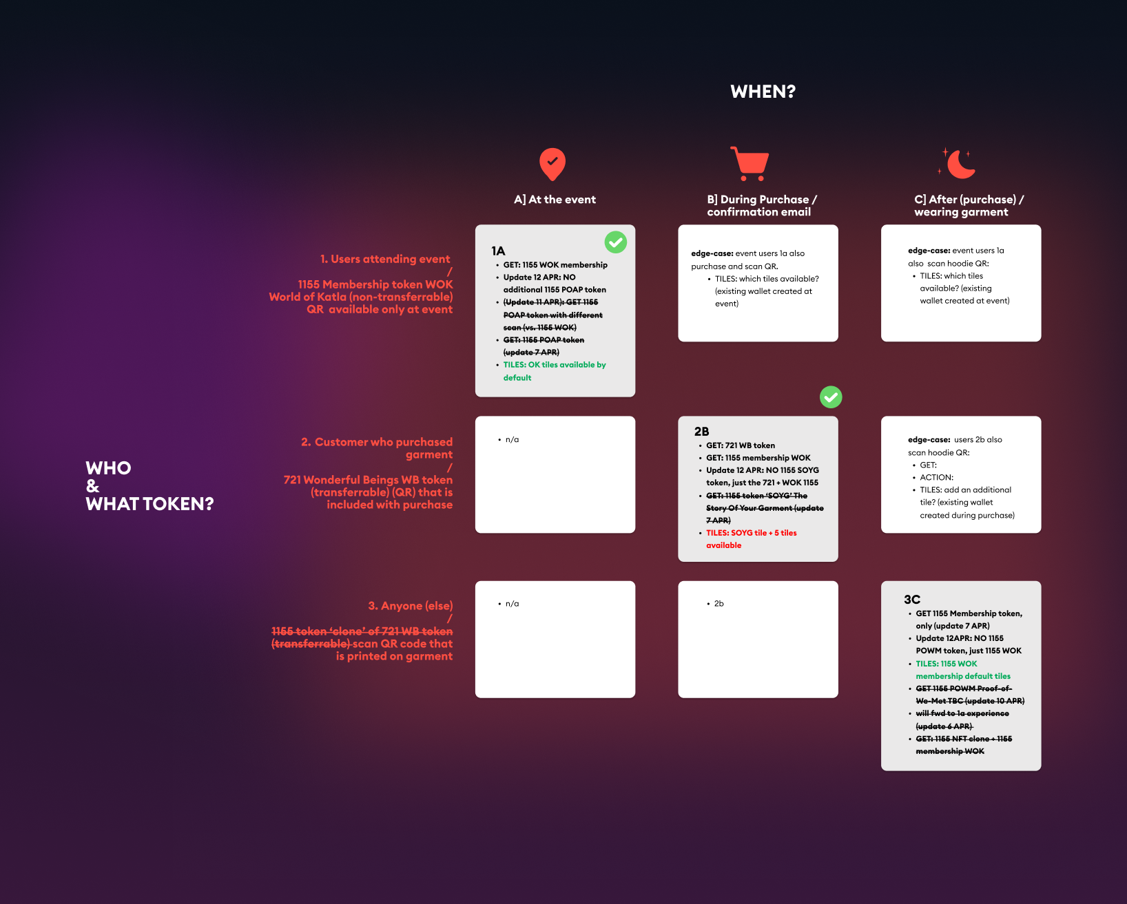 The Product Performance Checklist connected user actions to technical reality. When a user claims a membership token, what API calls fire? What metrics indicate success? What alerts should trigger if something breaks? This framework gave engineers clarity and gave leadership visibility.